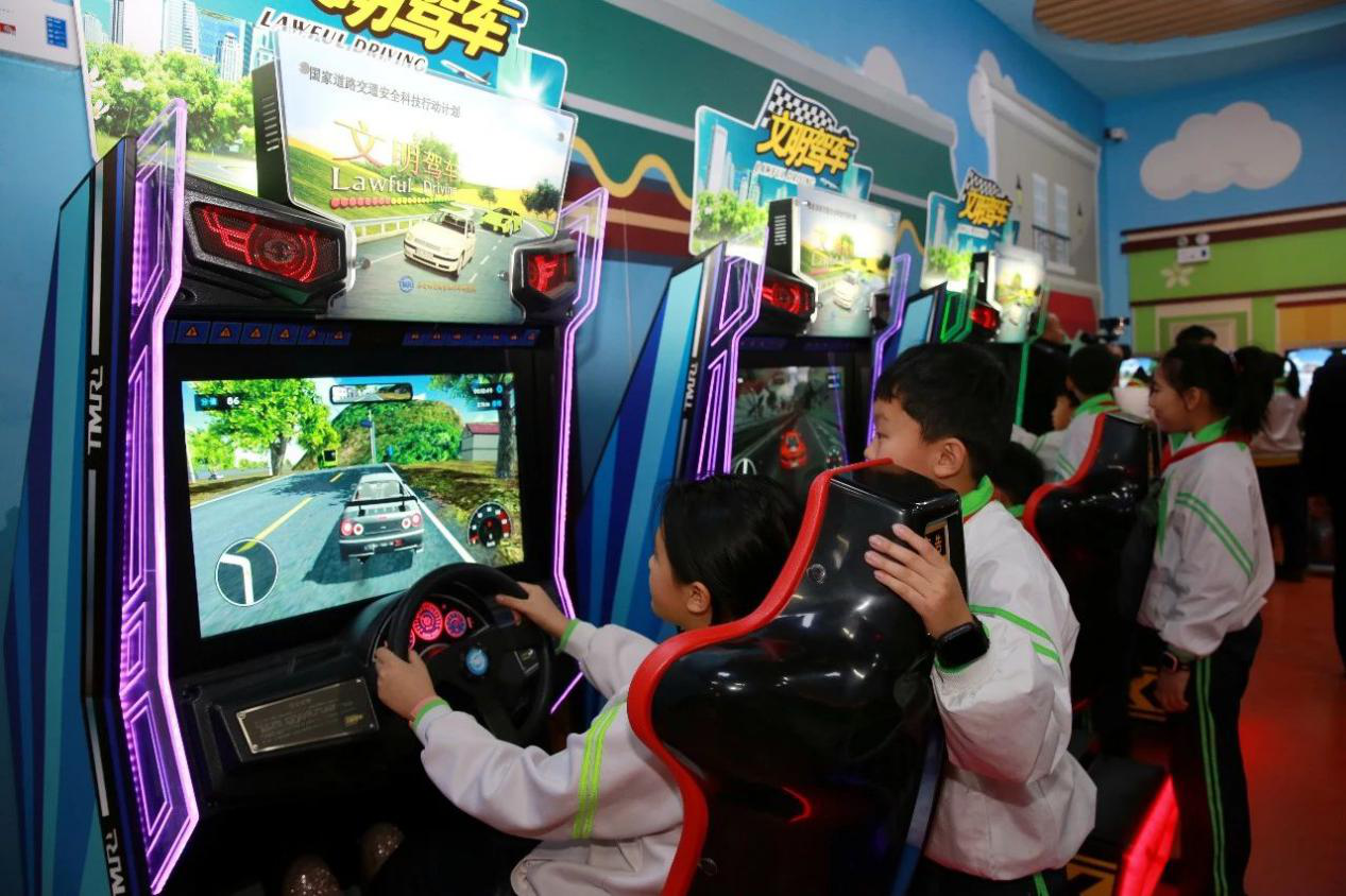 儿童交通安全体验区以情景融入的模式让儿童青少年学习交通安全知识。除可进行闯红灯体验、乘车体验、步行体验、骑行体验等体验内容外,还设有交通安全法律常识6人抢答区,进一步增加了学习比赛的趣味性。这种新颖形式让学生们在乐趣体验时也收获了满满的安全知识,培养了安全出行的理念。